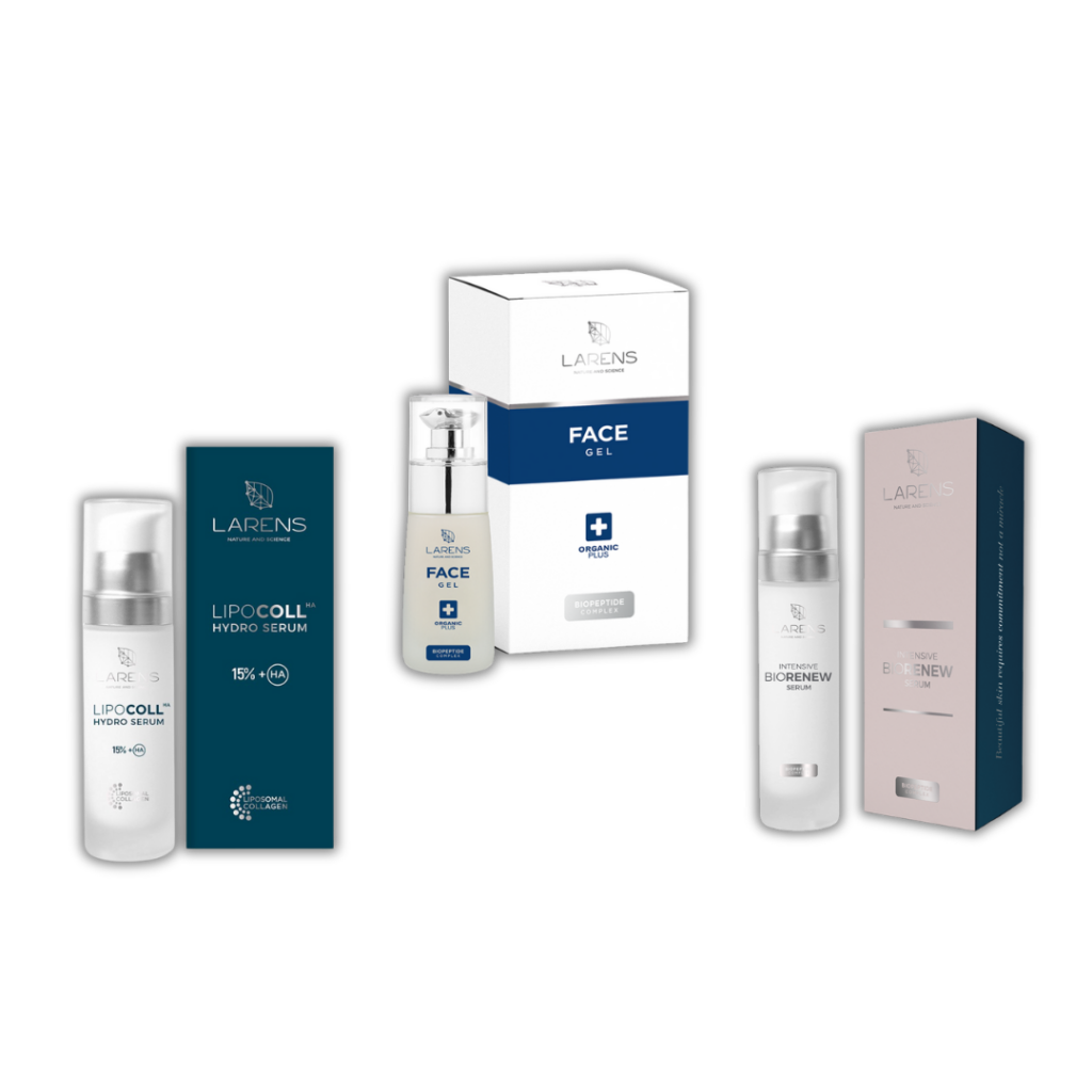 Znajdziesz w nim: żel do mycia twarzy, tonik, serum biopeptydowe, serum pod oczy i krem nawilżający.